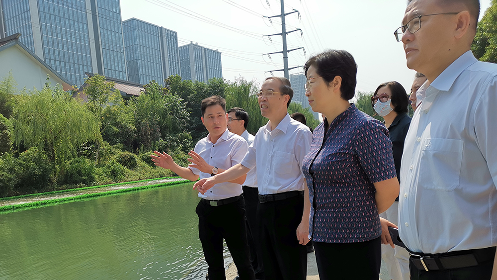 圍繞開展《提升我市河道水生態(tài)保護水平的若干建議》重點提案辦理協(xié)商,2021年9月18日,杭州市政協(xié)主席潘家瑋率杭州市政協(xié)代表團,赴我公司拱墅區(qū)紅旗河片區(qū)生物鏈治水項目督查。杭州市拱墅區(qū)區(qū)委書記陳瑾陪同。
