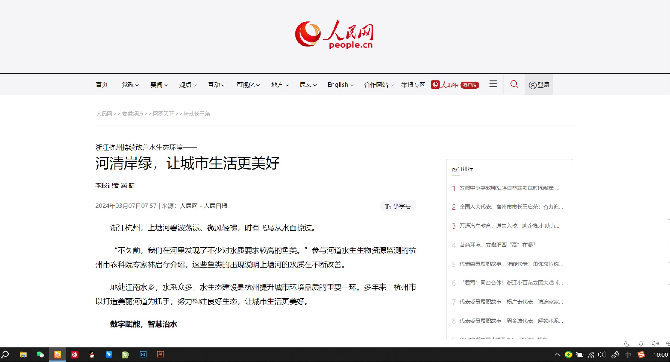 人民網(wǎng)報道——浙江清湖控股杭州河道治理